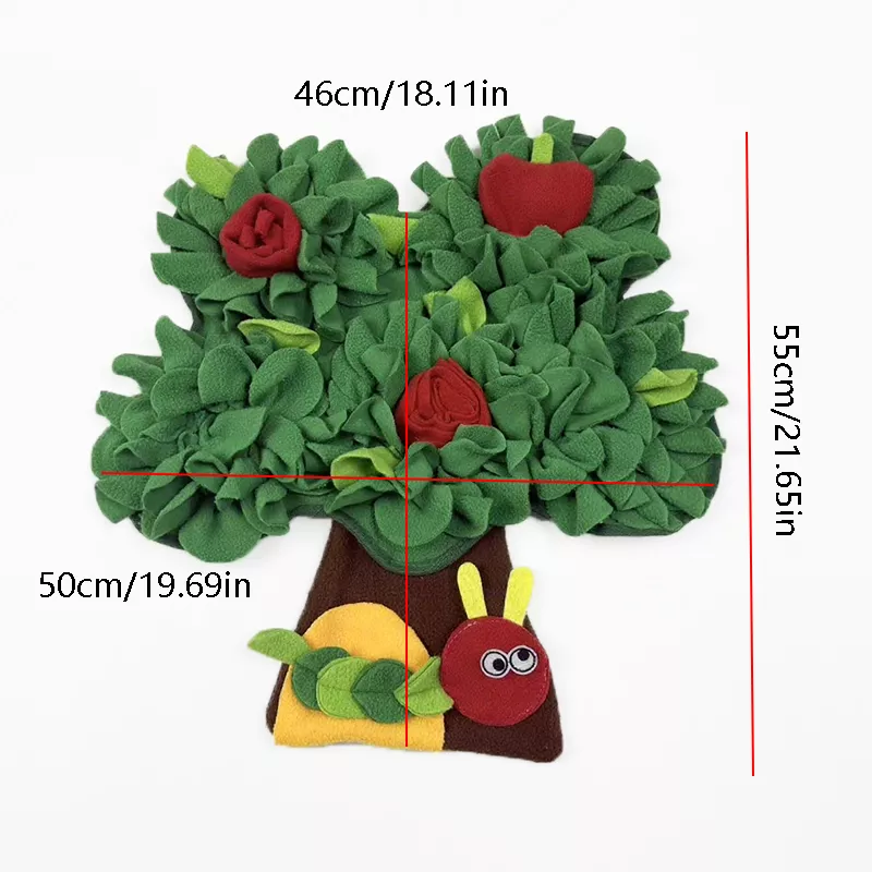 The Apple Tree Sniffing Mat is perfect for any time your dog needs stimulation or enrichment. Use it during mealtimes to slow down fast eaters, or introduce it during playtime for a fun and challenging scavenger hunt. Ideal for indoor activities on rainy days or when your dog needs to burn off some energy, this mat will keep them happily engaged and entertained.