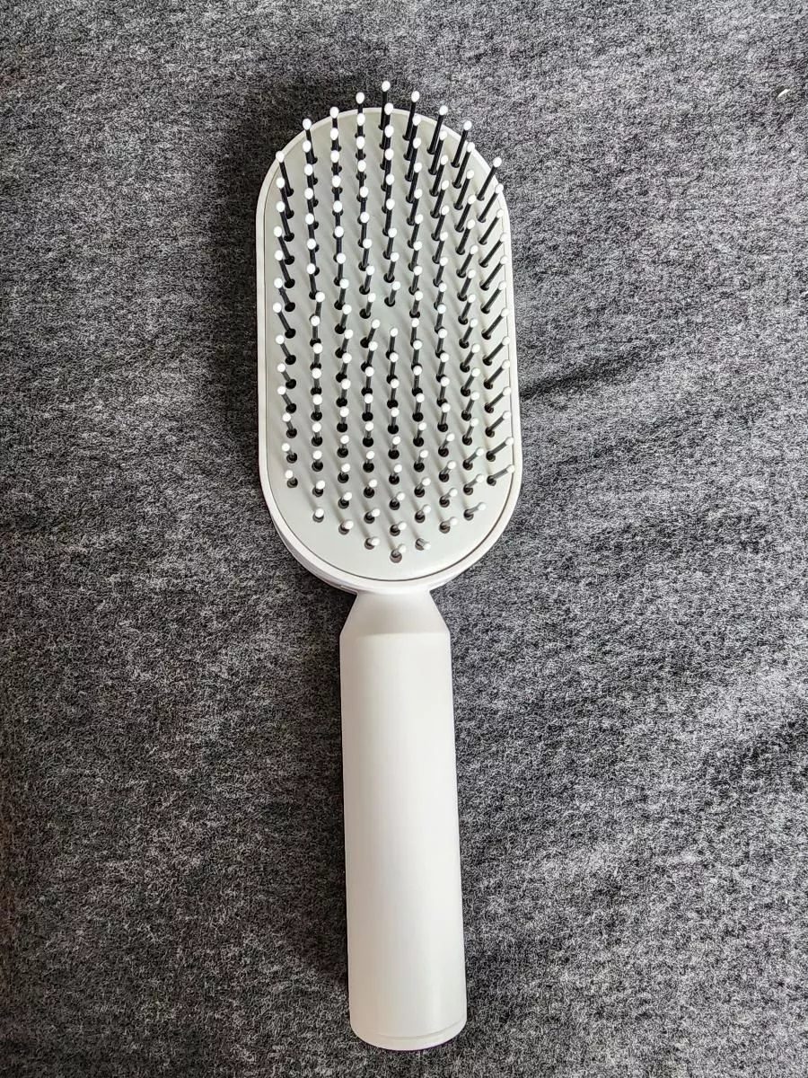 This brush has been an absolute game-changer in my daily grooming routine. It's so easy to clean with its one-key self-cleaning system - just push out trapped hair with a click! I've noticed less breakage since using this brush as it detangles without pulling at my strands.