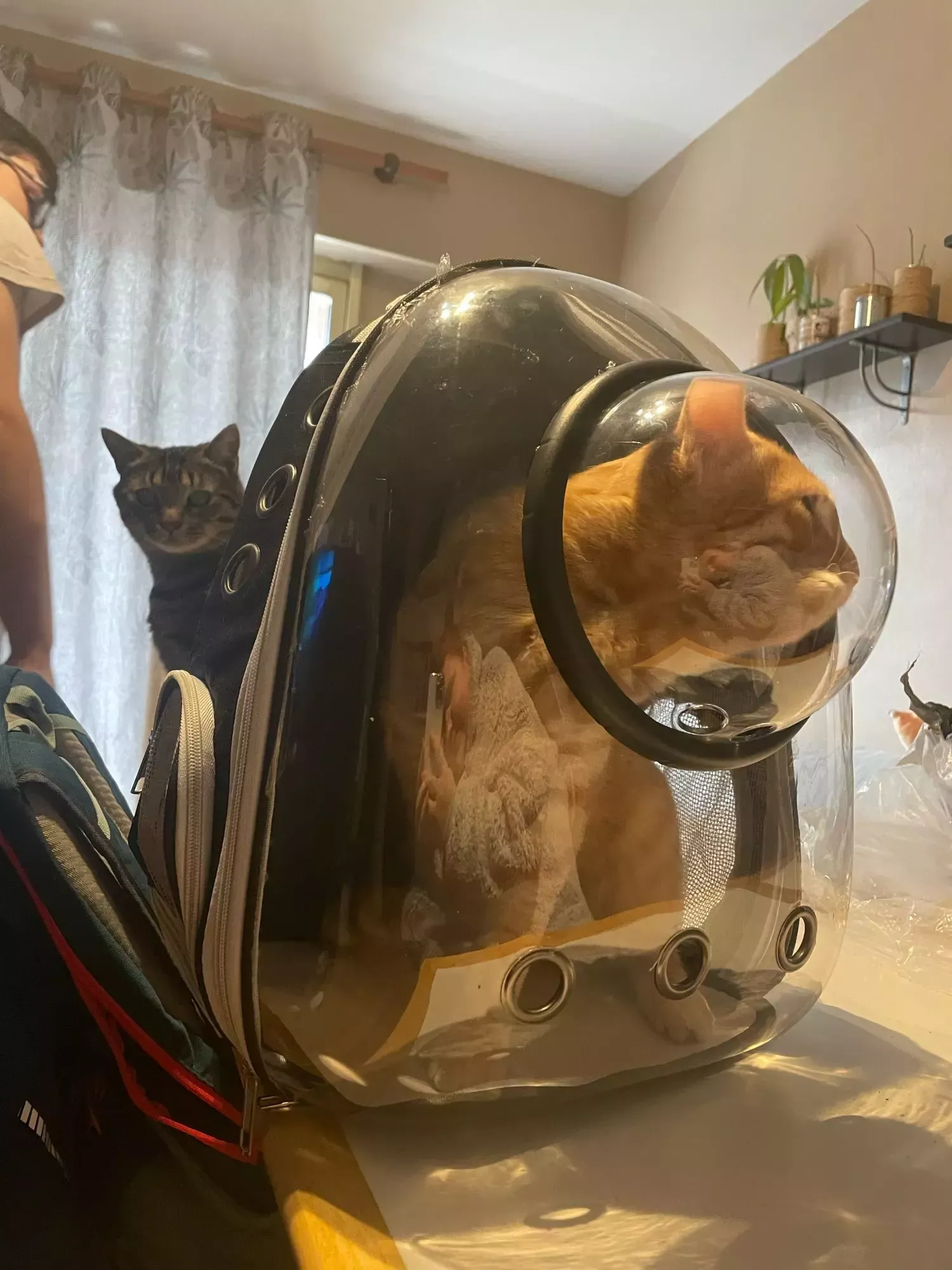 this cat backpack is perfect for my needs. my cat loves being able to see everything through the transparent design, and the ventilation keeps them cool and comfortable. the backpack is well-constructed and sturdy, with padded straps that make it easy to carry. it’s stylish and functional, ideal for vet visits or outdoor adventures. my cat seems very comfortable and secure inside. it’s also easy to clean, which is a big plus. i’m very happy with this purchase and would highly recommend it to other cat owners looking for a quality carrier.