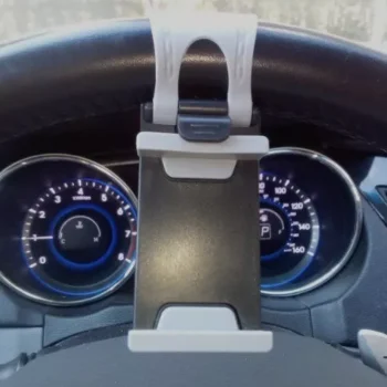 The elasticity at its best perfectly describes this car steering wheel phone mount! My smartphone fits snugly into place without any worry about slipping out or getting scratched due to the protective silicone padding included in its design.