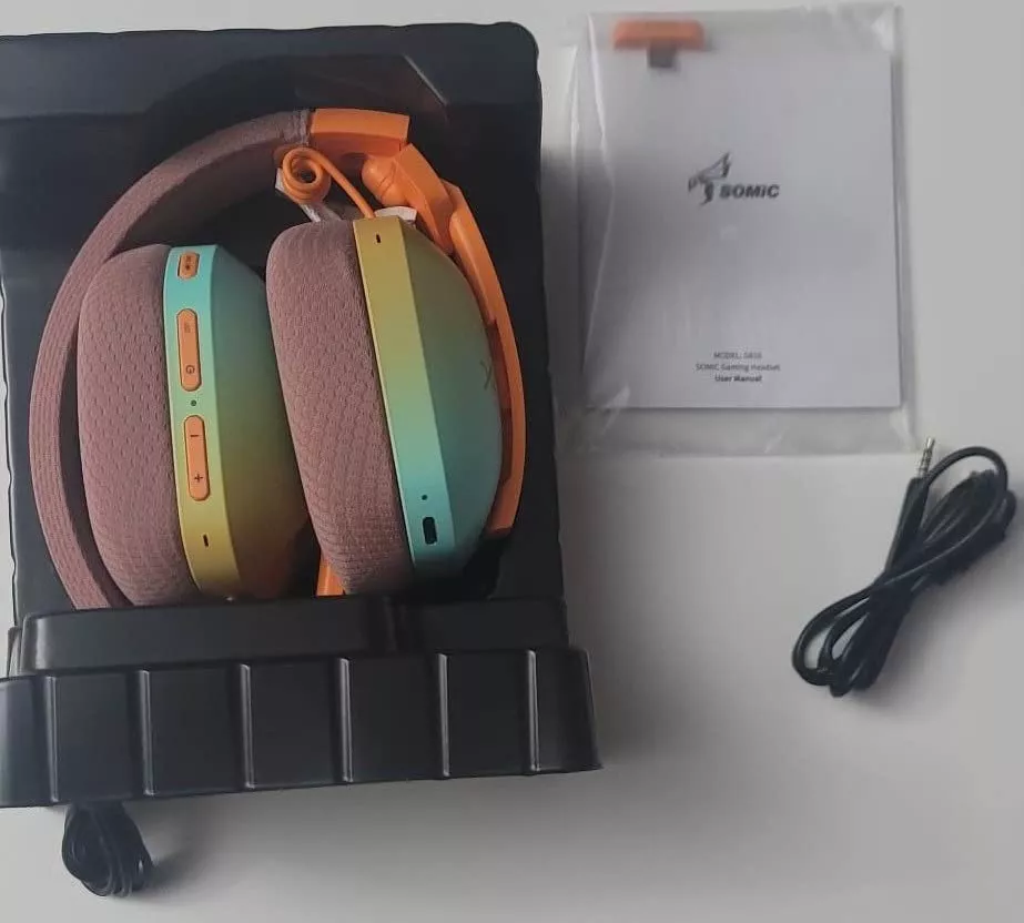 The G810 Wireless headset arrives in an eye-catching box that includes a USB-C cable, an audio cable, a Bluetooth transmitter, and a comprehensive instruction manual. The vibrant color scheme of pink, orange, and a gradient from turquoise to yellow immediately stands out. Once removed from the box, the headset requires a simple adjustment to fit comfortably around the head, thanks to its flexible and soft headband. On the right side of the headset, a convenient control panel features buttons for adjusting volume, powering on or off, controlling the LED lights, and managing the microphone and mode settings. These buttons allow for easy switching between game and music modes, toggling the microphone, and choosing between a Bluetooth transmitter connection and a mobile phone connection. The audio cable port and a Bluetooth connectivity indicator are also located here. The left side houses the USB-C charging port and a light that indicates battery status. When powered on, decorative symbols on the headset light up, cycling through multiple vibrant colors for a visually engaging effect. The headset offers flexibility in connection through standard Bluetooth or via the Bluetooth transmitter, accommodating devices without built-in Bluetooth by utilizing either a USB or USB-C connection. Designed to be lightweight and comfortable, the headset provides outstanding sound quality with a clear, immersive audio experience. It boasts a long battery life of up to 50 hours on a single charge, which takes just a few hours to complete. The combination of a comfortable fit, excellent sound quality, ease of pairing with devices, and the added enjoyment of colorful lighting effects makes this headset a highly satisfying purchase for its price.